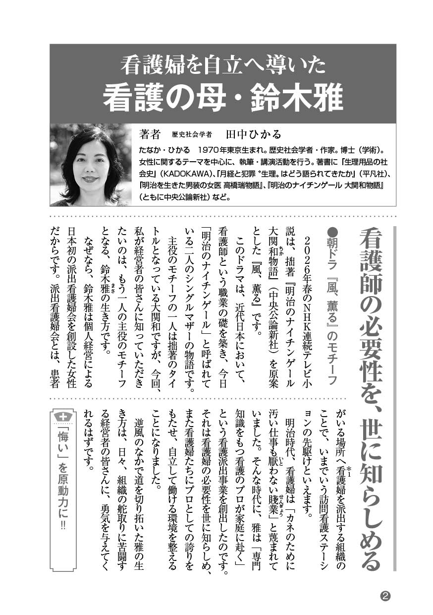 2026年連続テレビ小説の主役のモチーフの一人、鈴木雅。看護婦の地位向上に努めた彼女は、二人の子をもつシングルマザーでした。
